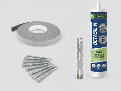 Retrouvez ici tous les accessoires nécessaires à la pose ou à la rénovation de vos fenêtres PVC. Pattes de fixation, vis, silicone, rouleau compribande… Tout ce dont vous avez besoin est ici, et toujours au meilleur rapport qualité-prix !