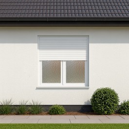 Fenêtre oscillo-battante avec volet roulant intégré en PVC manivelle. Fenêtre double vitrage prévue pour pose en applique, attention aux dimensions hors tout (voir photo / description).
