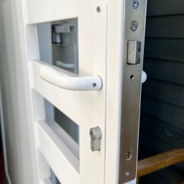 Le portail en PVC modèle Arles est un portail plein avec lames horizontales. Il protège votre intimité tout en donnant un visuel agréable à vos extérieurs. Existe également avec décor rectangle, carré ou insert. Il est entièrement sur-mesure et renforcé par un cadre en aluminium intégré. Gond inférieur à visser.