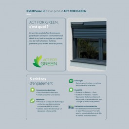 Le volet roulant Solaire PVC rénovation moteur SOMFY RS100 Solar io apporte le confort du volet motorisé sans tirer de câble, avec un fonctionnement silencieux, une vraie autonomie et une gestion intelligente de la lumière et de la chaleur. Il allie performance et durabilité grâce à sa motorisation solaire SOMFY. Conçu et fabriqué en France, il est équipé d’un tablier en PVC composé de lames de 42x9 mm, offrant une isolation et une résistance optimales. Son coffre en aluminium à pans coupés, associé à des coulisses et une ossature également en aluminium, assure une grande robustesse et une finition soignée. L’axe ZF 54 en acier galvanisé garantit un fonctionnement fiable dans le temps. Ce modèle est livré avec un interrupteur mais sans accessoires de pose, et bénéficie d’une garantie de 5 ans sur le moteur et 2 ans sur les lames, un gage de qualité et de longévité.